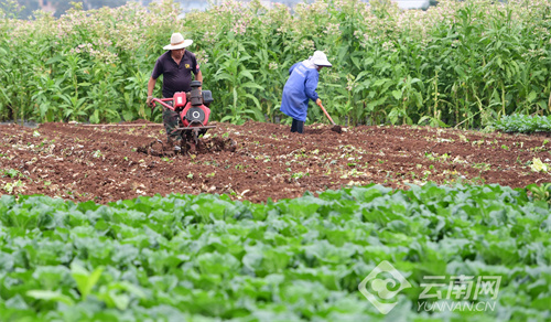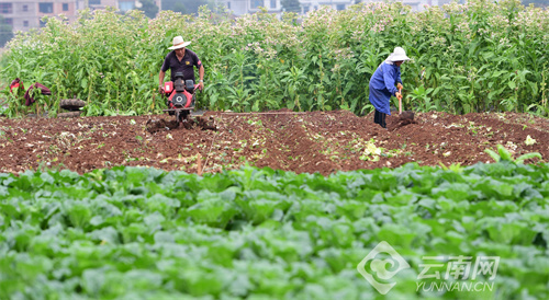 当前,正值秋冬生产大忙时节。玉溪市各地农民群众正抢抓节令掀起秋冬农业生产高潮。图为,在江川区雄关乡上营村的田间地头,随处可见农民群众忙着翻耕田地、播种菜苗、浇水施肥的忙碌身影,呈现出一派繁忙的秋冬农业生产景象。