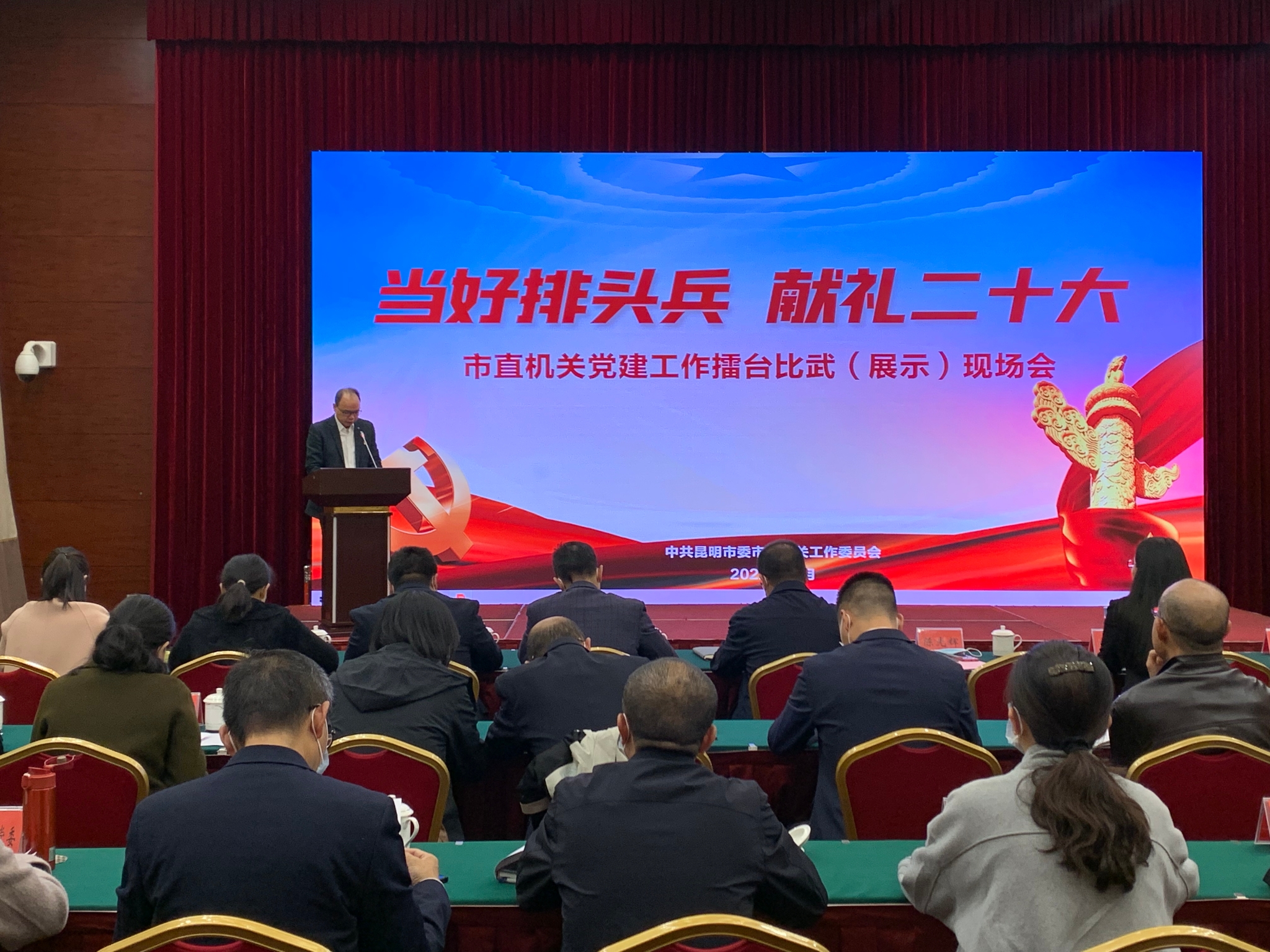 昆明市委市直机关工委常务副书记陈光辉表示,举办昆明市直机关党建工作擂台比武赛,将全面展示市直机关基层党建特色亮点和开展作风革命效能革命成效,发挥先进典型的示范带动作用,为机关党建创新发展提供启示和有益借鉴,进一步推动昆明市直机关党建高质量发展。同时也是对市直机关党建成果的一次大检验,在市直机关营造“比、学、赶、超”浓厚氛围,通过“晒”思路、“晒”成绩、“晒”亮点,树立“今天再晚也是早,明天再早也是晚”的效率意识,以赛促学、以赛促干,赛出机关党建工作“加速度”。