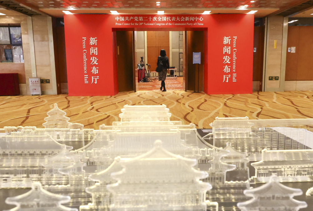 新华社北京10月13日电 记者潘洁 刘奕湛 “热烈欢迎中外记者朋友采访中国共产党第二十次全国代表大会”——醒目的标语,悬挂的中国结,鲜红的背景板,布置一新的采访间……在北京梅地亚中心和北京新世纪日航饭店党的二十大新闻中心,随处可以感受到盛会将至的热烈气氛。