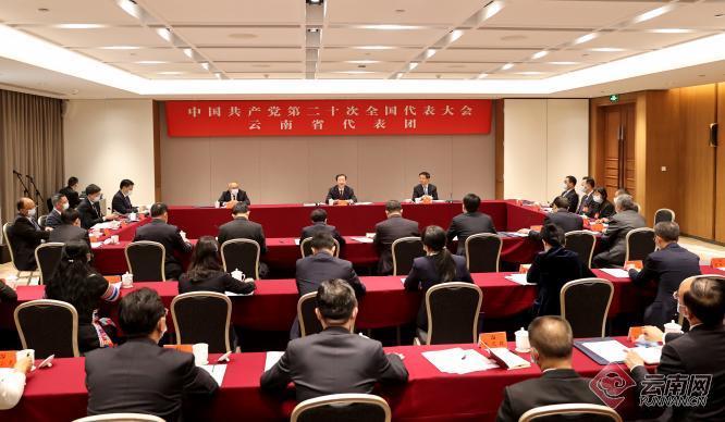 10月15日上午,出席中国共产党第二十次全国代表大会的云南省代表团举行全体会议,传达学习贯彻党的十九届七中全会精神,要求忠实履行代表职责,从政治的高度,以严的标准、严的要求、严的作风参加好会议。