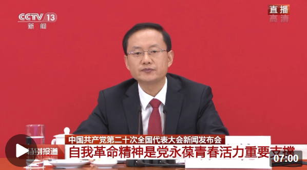 二十大新闻发言人:自我革命精神是党永葆青春活力的重要支撑