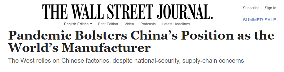 这也解释了《华尔街日报》所报道的,尽管西方各国都在谈论减少对中国工厂的依赖,但中国在过去两年依然巩固了其作为世界主要制造业大国的地位。