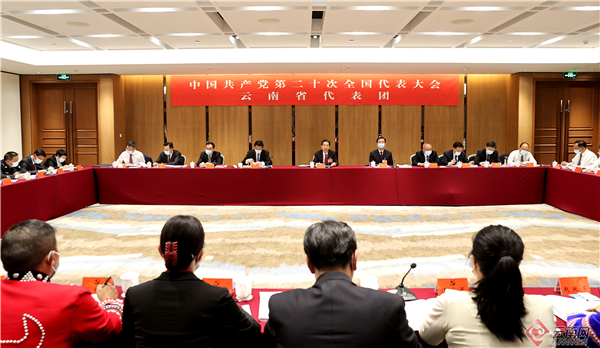 10月16日下午,云南省代表团举行会议,传达学习习近平同志在党的十九届七中全会上关于党的二十大报告起草工作的说明,深入学习讨论党的二十大报告。