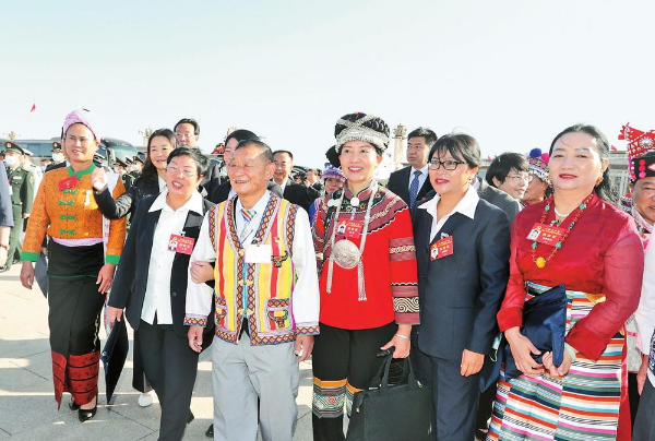 云南省代表团各民族代表满怀信心步入人民大会堂。记者周灿 雷桐苏/摄
