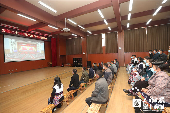 寻甸县七星镇鲁口哨村群众收看党的二十大开幕会直播。记者李海曦摄