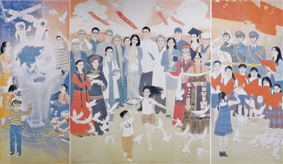 金秋十月,神州大地生机勃勃。重大工程捷报频传,科技进步日新月异,绿水青山环绕城乡……欣欣向荣的时代气象,感染着广大美术工作者。他们以浓墨重彩讴歌伟大发展成就、彰显崭新精神面貌、展现火热生活图景。今天,本版特从中共中央宣传部、中国文联主办的“筑梦——我们的新时代美术摄影作品展”等展览上,选登部分美术新作,与读者共赏新时代画卷。