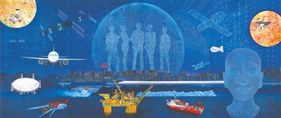 科技腾飞(中国画)黄华三