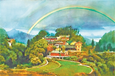 精准扶贫首倡地——十八洞村(水彩)黄铁山