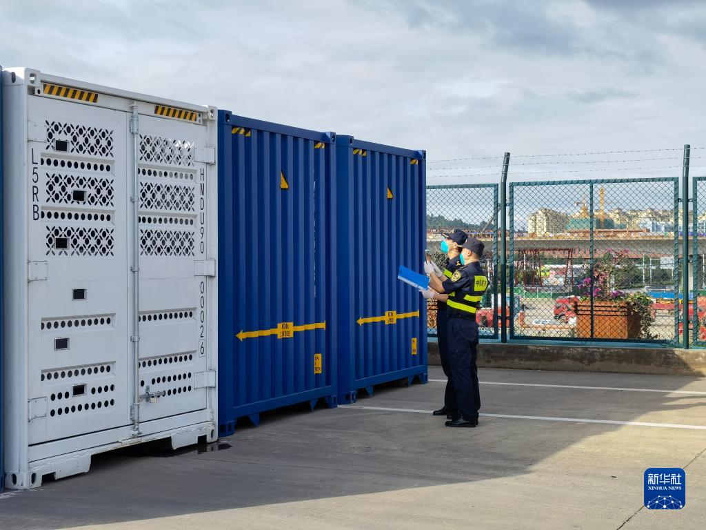 2022年8月30日,滇中海关关员使用设备对中老铁路国际货物列车出口货物进行查验。新华社发(昆明海关供图)