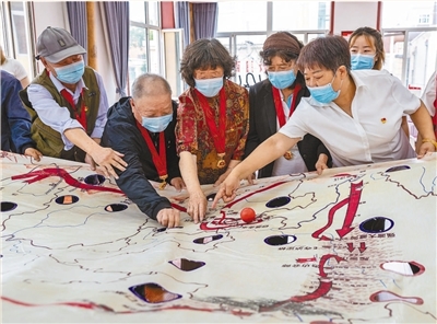 党员在内蒙古呼和浩特市玉泉区鄂尔多斯路街道社区服务中心学习红军长征史。丁根厚摄(影像中国)