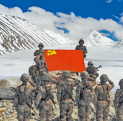 西藏阿里军分区某边防团巡逻官兵面向党旗庄严宣誓。刘晓东摄(影像中国)