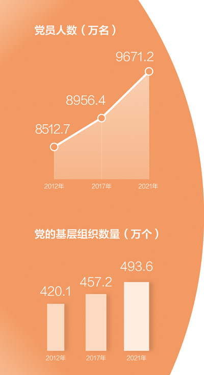 以习近平同志为核心的党中央深入推进新时代党的建设新的伟大工程,9600多万名党员、490多万个基层党组织以精神之光照亮前行之路,在各地区各领域发挥着先锋模范作用和战斗堡垒作用,汇聚起干事创业的强大合力。