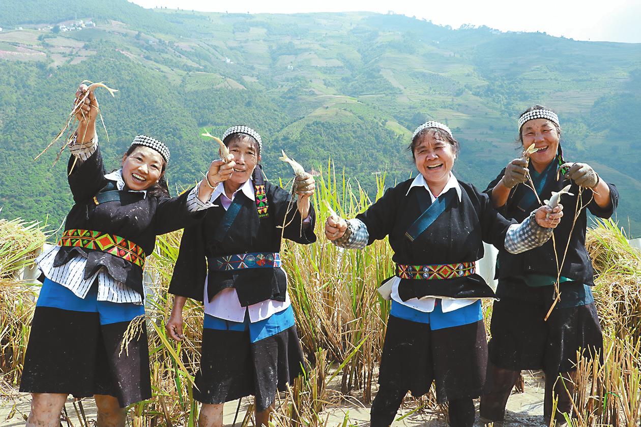 除了收获稻谷,哈尼族群众还在梯田里收获了肥硕的鱼儿和生态的鸭子、鸭蛋,摸鱼捡蛋的乐趣,让丰收的喜悦倍增。村民李贵龙说,政府扶持稻田养鱼,今年他家不仅收了谷子,还卖了鱼增加收入。