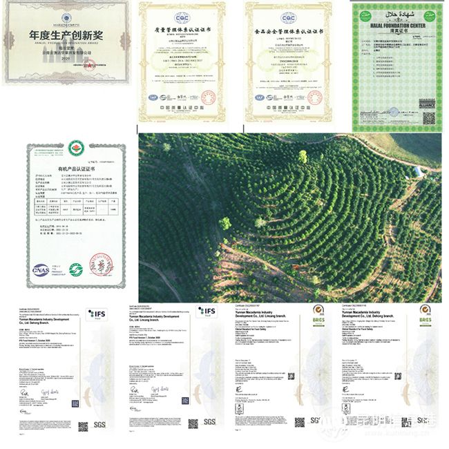 云澳达现已在云南临沧、德宏已经发展成为拥有1万亩种植基地、2座现代化加工厂、1家坚果研究所,集育苗、种植、加工、销售和研发于一体的全产业链现代化企业。同时获得ISO9001、ISO22000质量体系认证、有机食品认证、HALAL清真食品认证、IFS国际食品标准和BRC食品安全双欧盟认证,实现了从原料种植到加工、销售的可追溯性管理。
