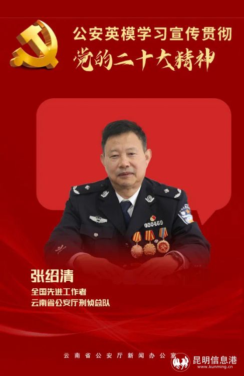 全国先进工作者、云南省公安厅刑侦总队刑侦专家张绍清:习近平总书记在党的二十大开幕会上的重要报告思想深邃、内涵丰富、光芒闪耀,我将深入学习宣传贯彻党的二十大精神,立足工作岗位,传承红色基因,发扬劳模精神,发挥“传帮带”的作用,把自身长期以来积累的经验传承给年轻一代的痕迹技术人员,努力实现“刑事犯罪少,百姓心里安”的目标,用实际行动为维护社会治安稳定和人民安居乐业作出贡献!
