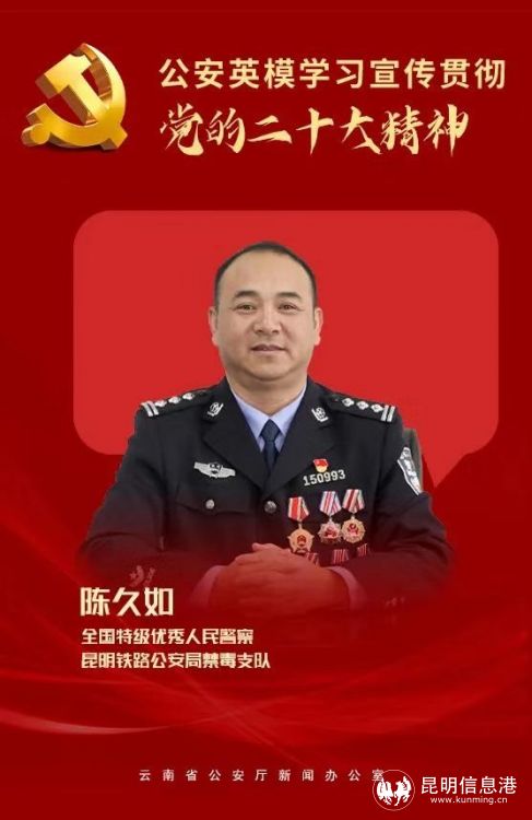 全国特级优秀人民警察、昆明铁路公安局昆明公安处禁毒支队支队长陈久如:大河奔涌,壮阔澎湃,党的二十大胜利开幕映射出新时代画卷的辉煌灿烂。我将深入学习宣传贯彻党的二十大精神,切实履行新时代公安职责使命,坚决扛牢“禁毒为民”的旗帜,持续擦亮昆铁禁毒品牌,抓好专案、查缉、执法等工作,不断提升信息研判能力、强化专案攻坚水平、深化集群打击战果,向毒品犯罪发起凌厉攻势,坚决守住铁路禁毒主阵地,为新时代新征程守护平安!