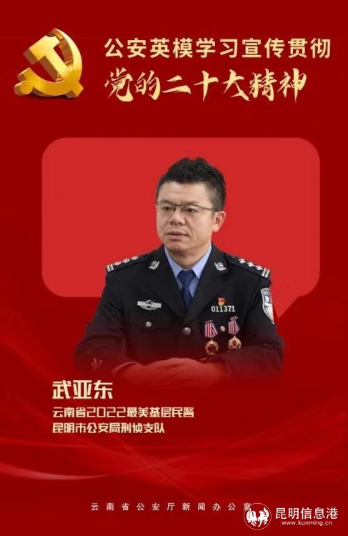 云南省2022最美基层民警、昆明市公安局刑侦支队民警武亚东:聆听了习近平总书记的报告,我深受鼓舞、倍感振奋。新时代公安工作的变革性实践,进一步加深了我对“必须坚持党对公安工作的绝对领导”这一根本原则的认识。作为一名长期战斗在侦查一线的反诈民警,我将以零容忍的态度,严厉打击、严密防范电信网络诈骗犯罪,将科技手段与打击治理深度融合,全方位织密技术反诈防护网,守好人民群众的“钱袋子”!