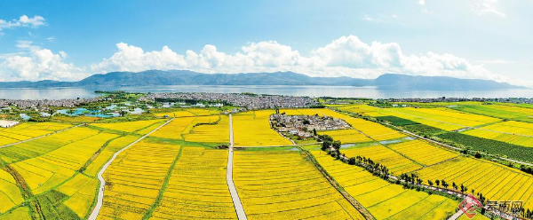 洱海畔的金色稻田 云南网记者 陈飞 摄