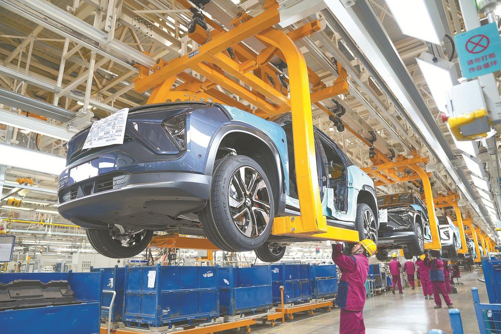 江淮蔚来合肥先进制造基地流水线。记者 李博 摄