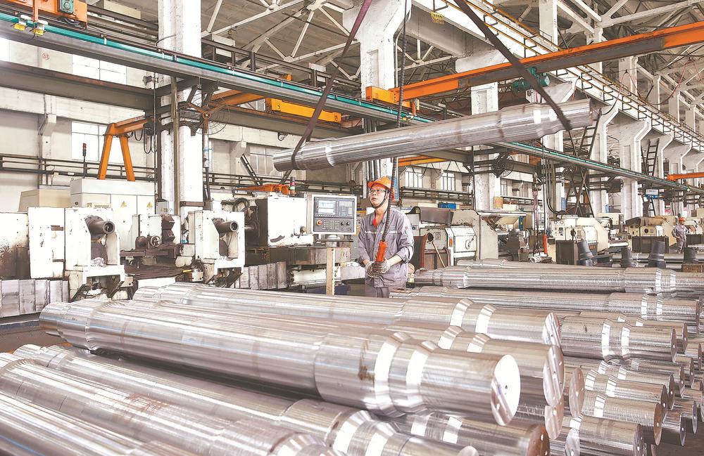 中车长江铜陵车辆有限公司加大科技创新力度,优化产品结构,生产的车轴、车钩、轮对等铁路产品,出口印度、澳大利亚、阿联酋、南非等国。图为工人在生产订单产品。 通讯员 梅建广 摄