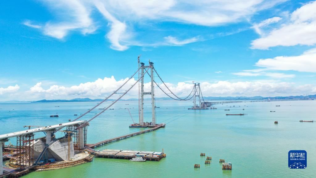 这是深中通道关键控制性工程伶仃洋大桥的建设现场(10月16日摄,无人机照片)。新华社发(张政 摄)