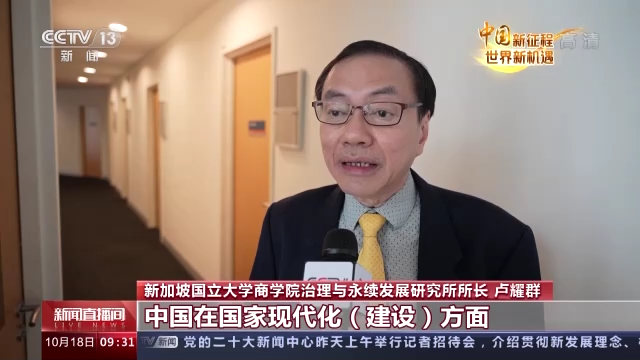 新加坡国立大学商学院治理与永续发展研究所所长 卢耀群:回顾中国在过去十年中取得的成就,中国在国家现代化(建设)方面,尤其在社会和经济方面取得了很大进展,实际上是许多国家可以借鉴的,为其他国家树立了一个非常好的榜样。