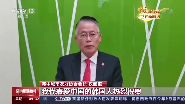 韩中城市友好协会会长 权起植:我代表爱中国的韩国人热烈祝贺中国共产党第二十次全国代表大会成功举办,期待中国以此次大会为契机,取得更大发展。
