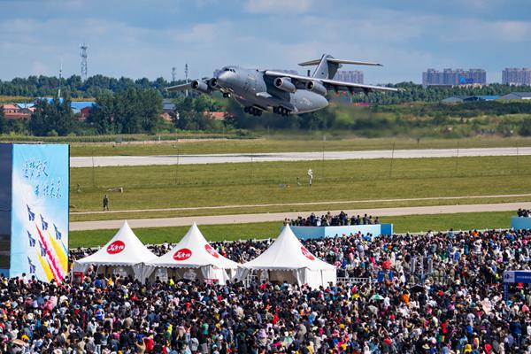 2022年空军航空开放活动上,人民空军某部运-20运输机向公众展示短距离飞行。摄影:万全
