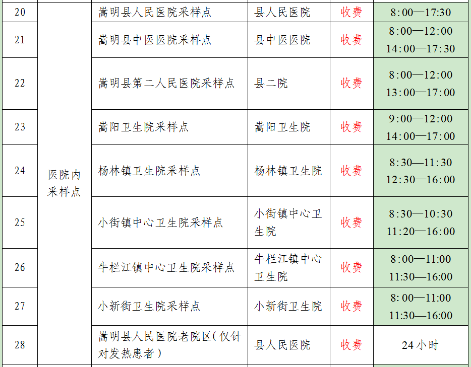 为进一步优化常态化核酸检测点位设置和社会面日常核酸筛查,加强采样点位精细化、标准化管理,保障采样人员和群众安全,现对全县28个核酸采样点进行调整优化,其中免费核酸检测点位按照“愿检尽检”原则,于工作时间对群众开展免费核酸检测。