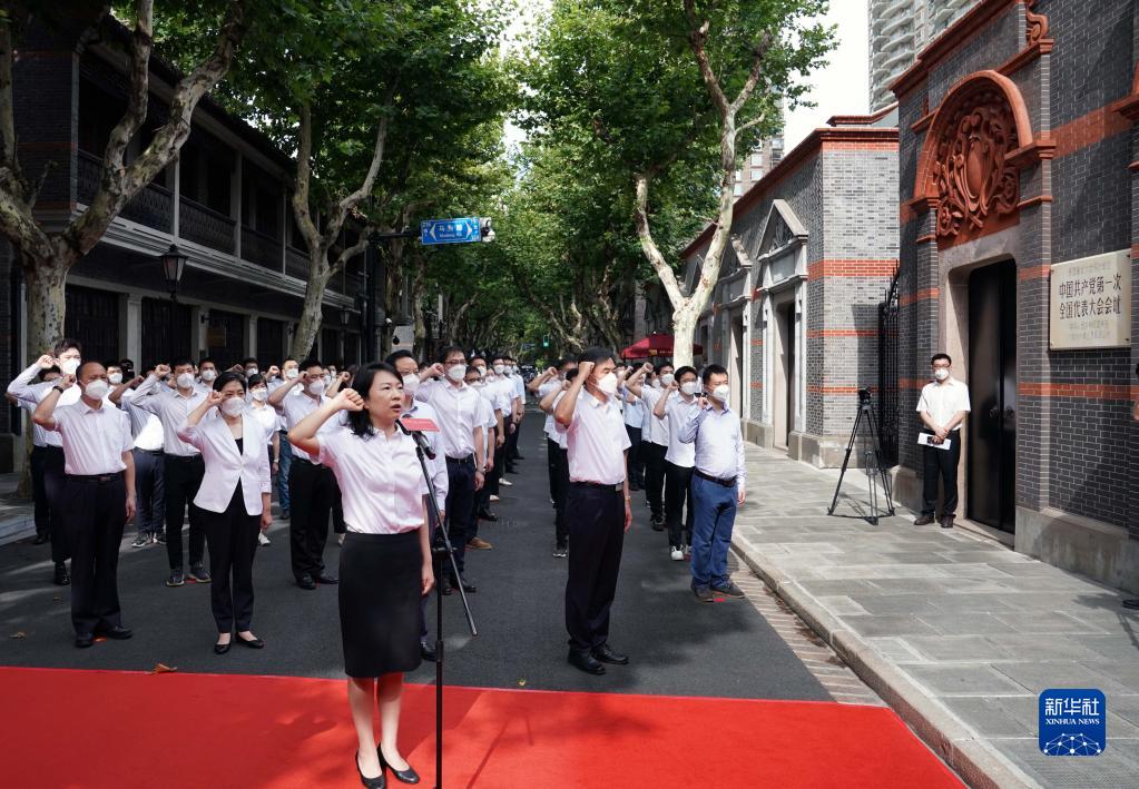 上海市新党员代表入党宣誓活动在中共一大会址前举行(2022年7月1日摄)。新华社记者 刘颖 摄