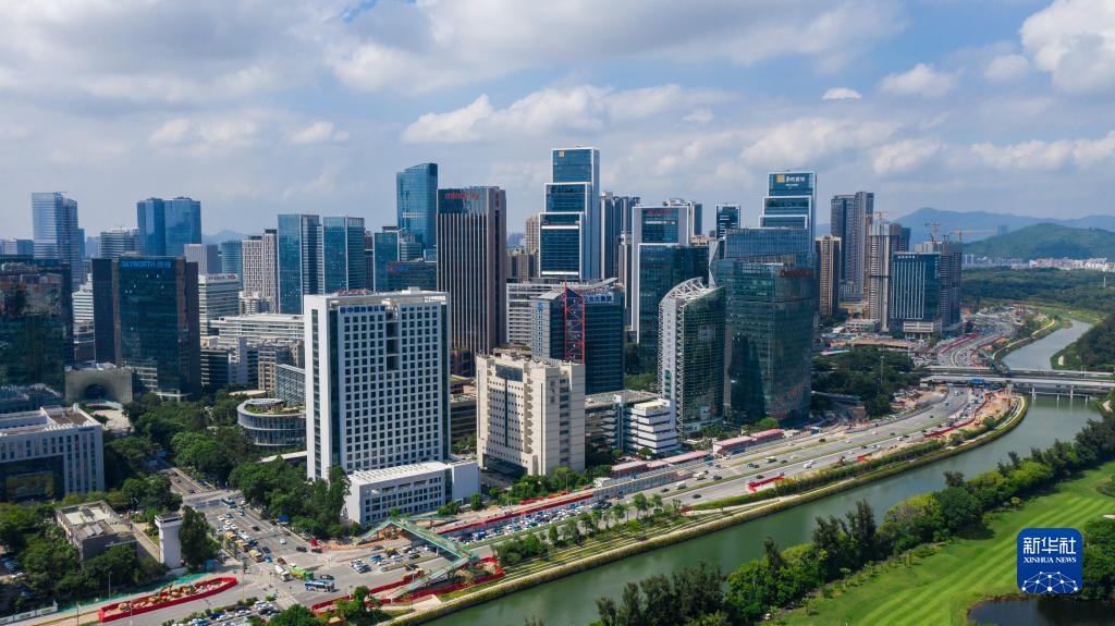 深圳市南山区大沙河畔的科技园(2020年9月27日摄,无人机照片)。新华社记者 毛思倩 摄