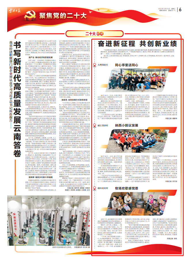 连日来,记者来到洱海之滨、雪域高原,在同心亭下、在纳西小院、在草甸牧场,和乡亲们一起学报告、议发展、话未来。