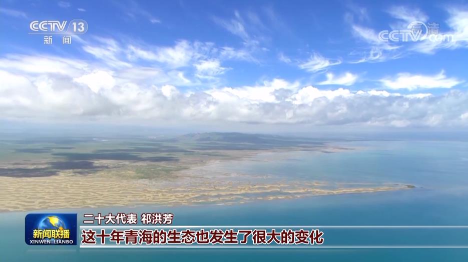 在青海展区,祁洪芳代表在一幅照片前久久不愿离开,这幅照片上是她工作了30年的地方——青海湖。