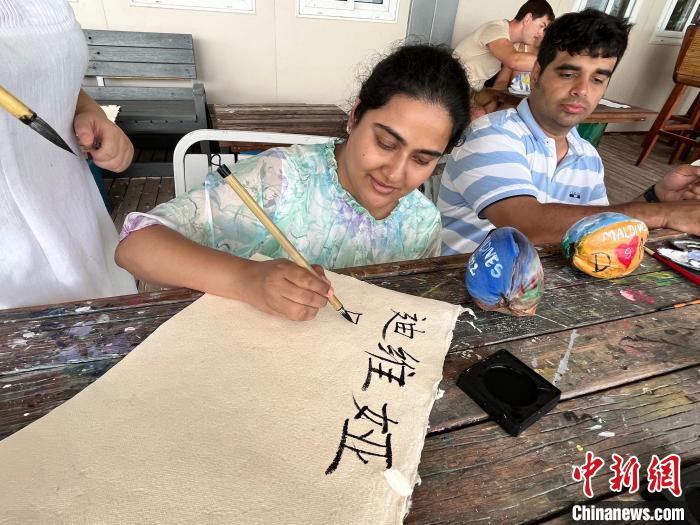 中新网马尔代夫10月16日电学东巴文字、赏茶艺表演、品云南咖啡……16日,“美丽中国·七彩云南”文化周活动正在马尔代夫南阿里环礁丽世度假村举行,受到当地居民和游客欢迎。