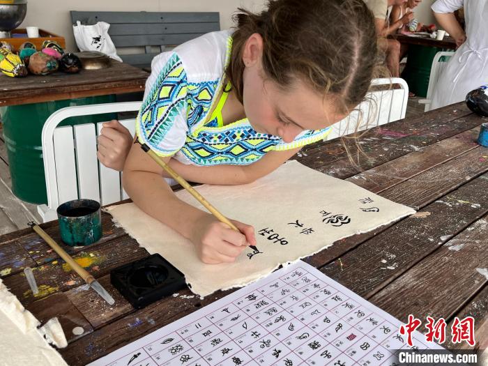其中,古老而有趣的东巴文探秘活动尤受欢迎。东巴文是纳西族所使用的兼备表意和表音成分的图画象形文字,是世界上至今唯一活着的象形文字,被誉为文字的“活化石”。来宾们在猜意、书写的趣味体验中,感受纳西文化的魅力。