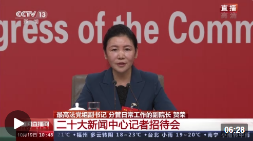 今天(10月19日)上午,二十大新闻中心举行第三场记者招待会。本场记者会围绕“坚持以习近平法治思想为指引 努力建设更高水平的法治中国”主题与记者交流。