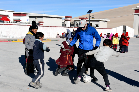 体育教师施刚强在课堂上注意到,藏族孩子比较害羞、腼腆,为了让学生们活跃起来,他在课上安排了各种团体游戏和比赛,让每个孩子都能在体育活动中发挥优点、享受快乐。
