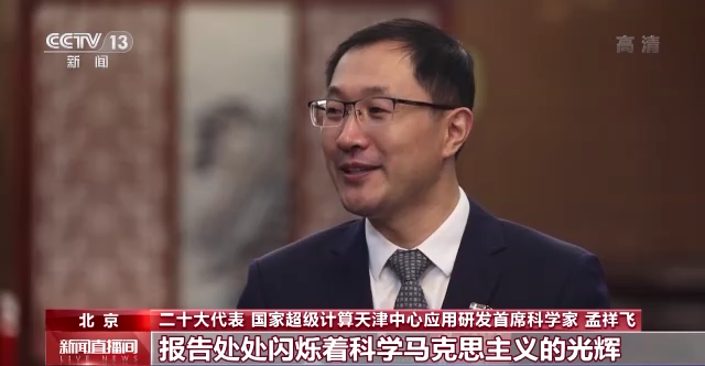 二十大代表、国家超级计算天津中心应用研发首席科学家 孟祥飞:报告处处闪烁着科学马克思主义的光辉,是总书记擘画的中国式现代化的纲领。总书记还专门讲到了超级计算等重大科技创新成果,让我深切体会到作为一名一线科技工作者,一名普通党员,其实一直也在与我们这个伟大的党,伟大的国家,同呼吸、共命运。
