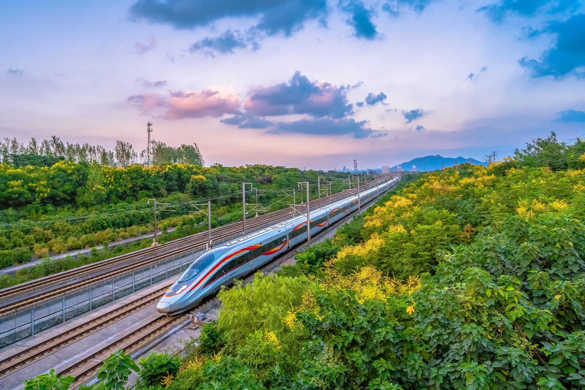 △“复兴号”动车组列车在京沪高铁江苏镇江段飞驰而过。