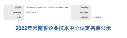 10月18日,省工业和信息化厅官网公示了2022年云南省企业技术中心认定名单,拟认定昆明中车轨道交通装备有限公司等31家企业的技术中心为第二十五批云南省企业技术中心,其中17家为昆明企业。公示期为10月18日至10月25日。