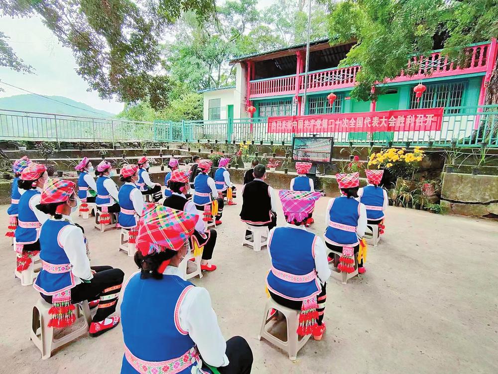 建水县曲江镇群众收看开幕会。
