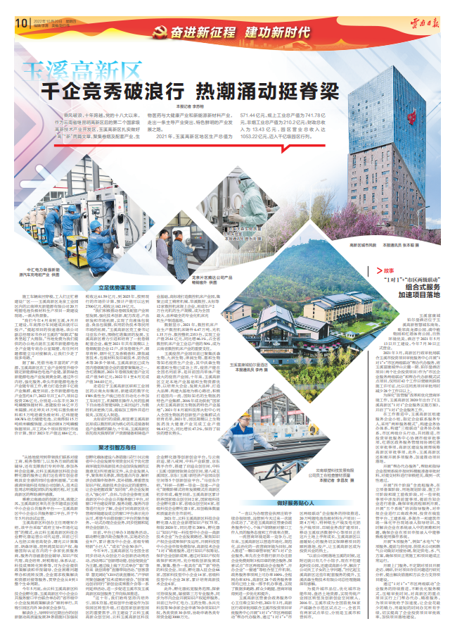 乘风破浪,十年跨越。党的十八大以来,作为云南省继昆明高新区后的第二个国家级高新技术产业开发区,玉溪高新区扎实做好“高”“新”两篇文章,聚集卷烟及配套产业、生物医药与大健康产业和新能源新材料产业,走出一条主导产业突出、特色鲜明的产业发展之路。
