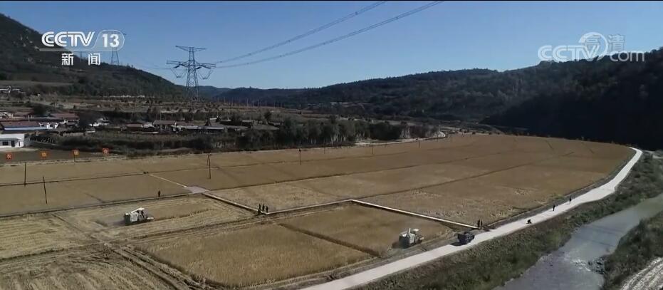 央视网消息:金秋十月,甘肃庆阳市合水县的千亩水稻也喜获丰收。连片的稻田翻腾起金色的细浪,当地村民们正抢抓晴好天气收割水稻,确保颗粒归仓。