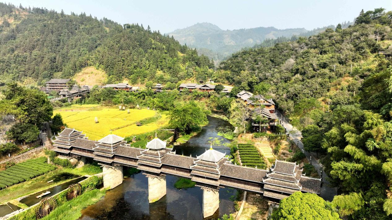 程阳八寨侗族风情浓厚,侗寨民居、桥梁基本都是木构建筑,独具特色。永济桥是程阳八寨的标志性建筑,整座桥梁不用一钉一铆,均是榫卯相连。秋日里独特的侗寨风光引来不少游客前来游玩。(央广网 记者罗兰)