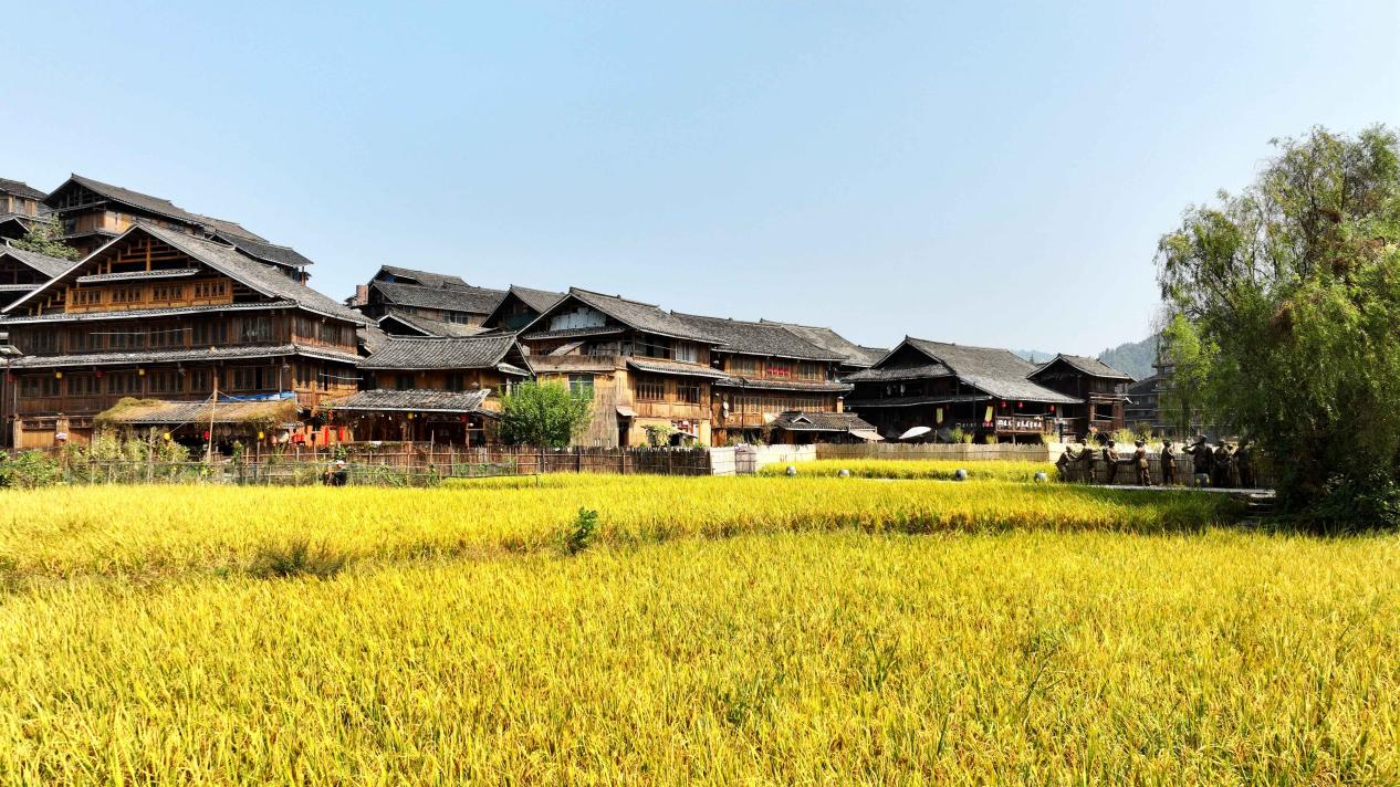 侗寨民居与稻田构成一幅秋日美景(央广网发 龚普康 摄)