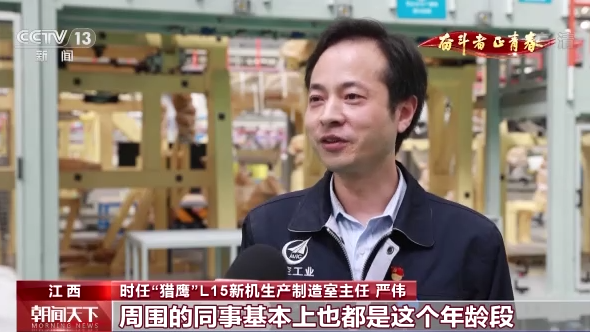 时任“猎鹰”L15新机生产制造室主任 严伟:我刚加入团队的时候年龄还不到30岁,周围的同事基本上也都是这个年龄段。一个新机型的研制过程其实是非常复杂、千头万绪的,所以大家在整个研制过程中吃住都在一线车间,24小时连轴转。我们经常在晚上的时候,有的同事累得直接端着泡面在型架边上就睡着了,虽然苦,但是大家心里就是有这么一股子不服输的劲。