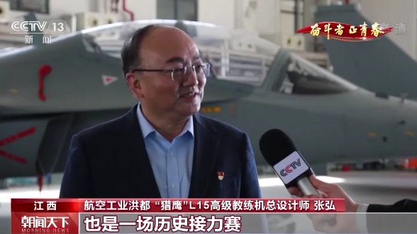 航空工业洪都 “猎鹰”L15高级教练机总设计师 张弘:习近平总书记说“实现中国梦是一场历史接力赛”。我认为,实现航空梦也是一场历史接力赛。通过新型高级教练机这个型号,我们培养了一大批有志青年,他们跟随型号一起成长,有的成长为独当一面的业务骨干,有的成了所在领域的领军人才,在实现航空强国的赛道上奋勇争先。