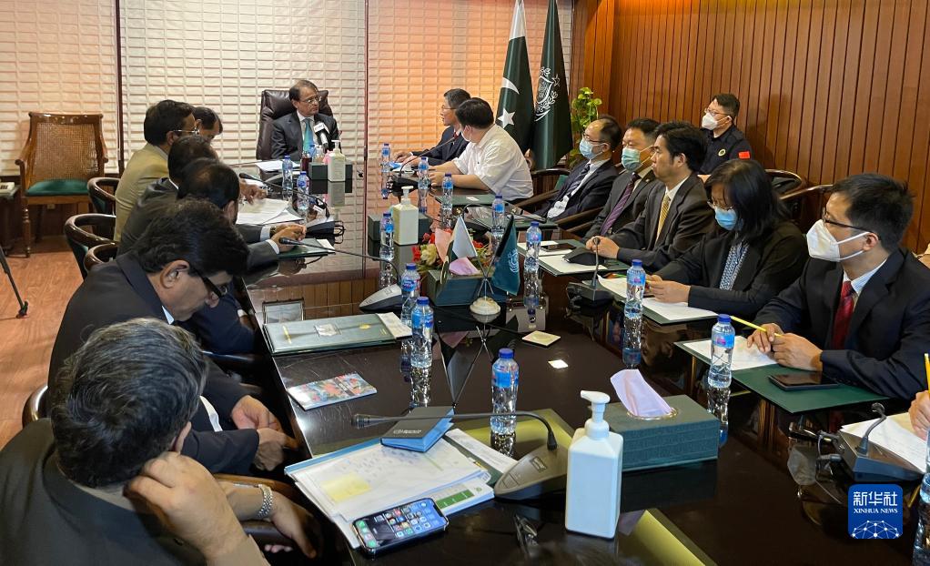 10月15日,中国政府防洪专家组在巴基斯坦南部信德省首府卡拉奇与巴方人员交流防灾减灾工作。新华社记者 姜江 摄