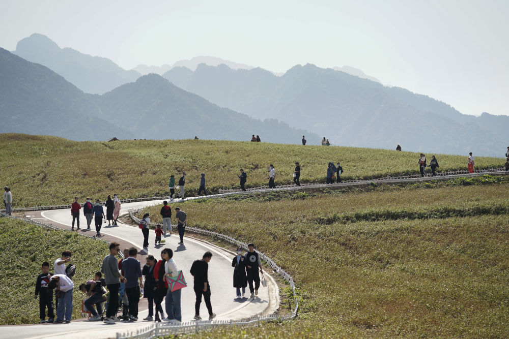 游客在位于秦岭南麓的陕西宁陕县渔湾村一处民宿院落内活动(10月10日摄)。新华社记者 邵瑞 摄