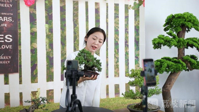 在李敏的带动下,新河镇双荡村电商已由原来的200户增加到400多户。2021年,在党组织的支持下,李敏带领村里返乡创业新村干创办双荡村“新村干”公益直播基地,帮助当地花农销售自制“沭派盆景”,带领更多人通过直播方式增收致富。